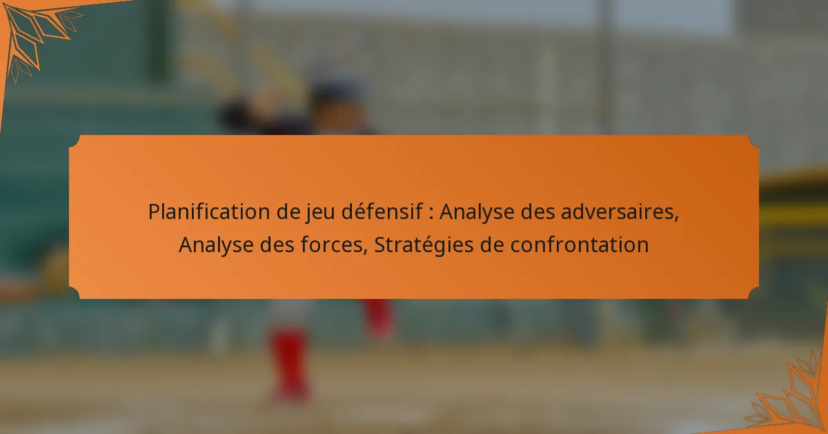 Des stratégies de confrontation efficaces sont essentielles pour la planification défensive, se concentrant sur l’exploitation des faiblesses des adversaires tout en maximisant les forces de votre équipe. Le choix entre la défense de zone et la défense homme à homme, ainsi que les stratégies situationnelles, peut influencer de manière significative les résultats des matchs.