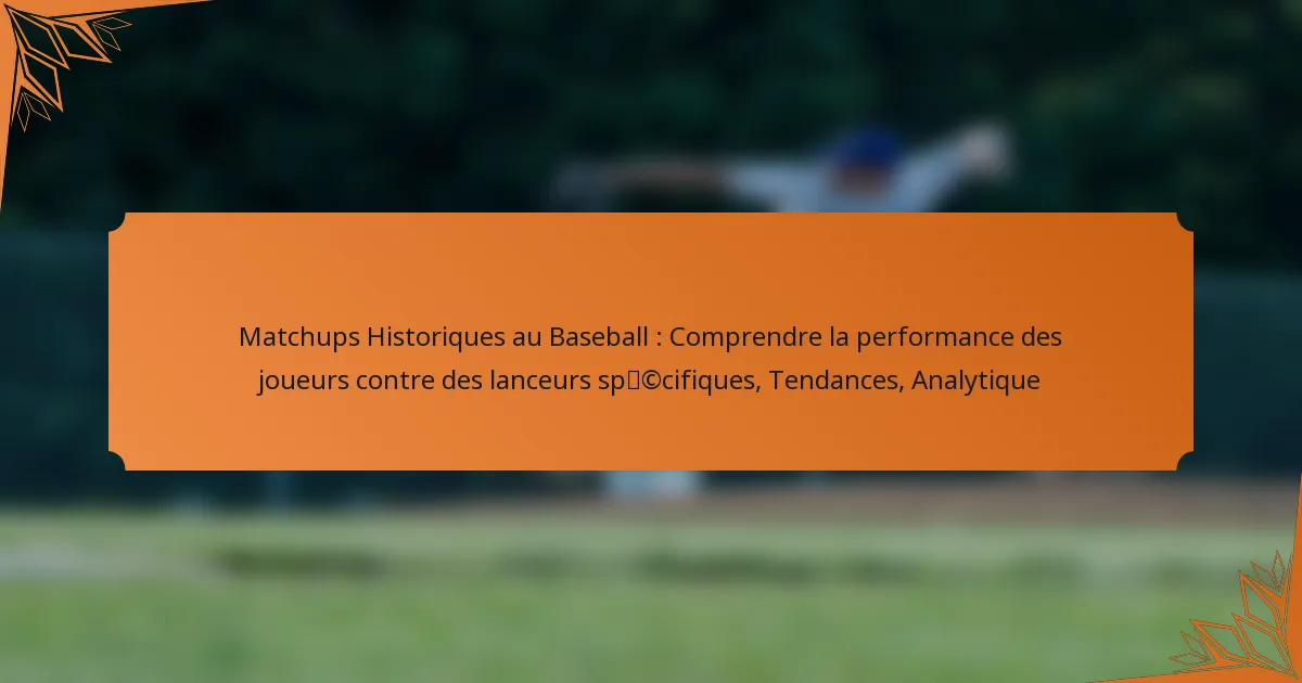 La performance des joueurs contre des lanceurs spécifiques peut varier considérablement en fonction des confrontations historiques. Analyser ces interactions aide les équipes et les analystes à comprendre les tendances dans les moyennes au bâton, les pourcentages de présence sur base et d’autres indicateurs clés qui influencent les résultats des matchs.