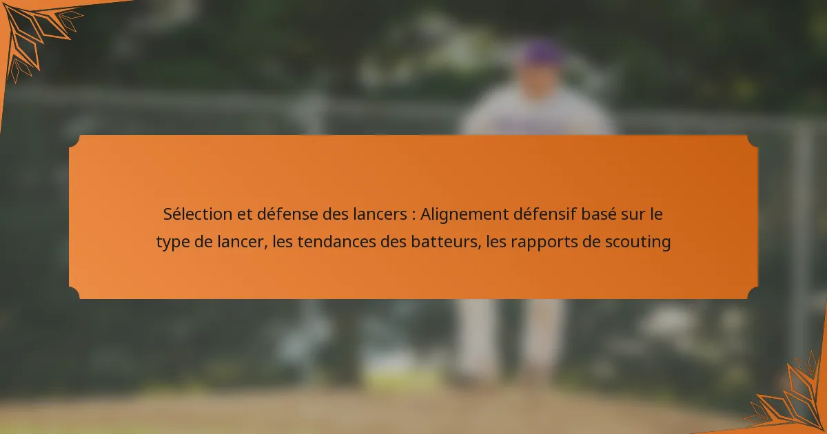 La relation entre le type de lancer et l’alignement défensif est cruciale pour optimiser le positionnement sur le terrain. Différents lancers, tels que les fastballs, les curveballs et les sliders, ont des caractéristiques uniques qui influencent la façon dont les défenseurs doivent se positionner pour maximiser les chances de réaliser un jeu.