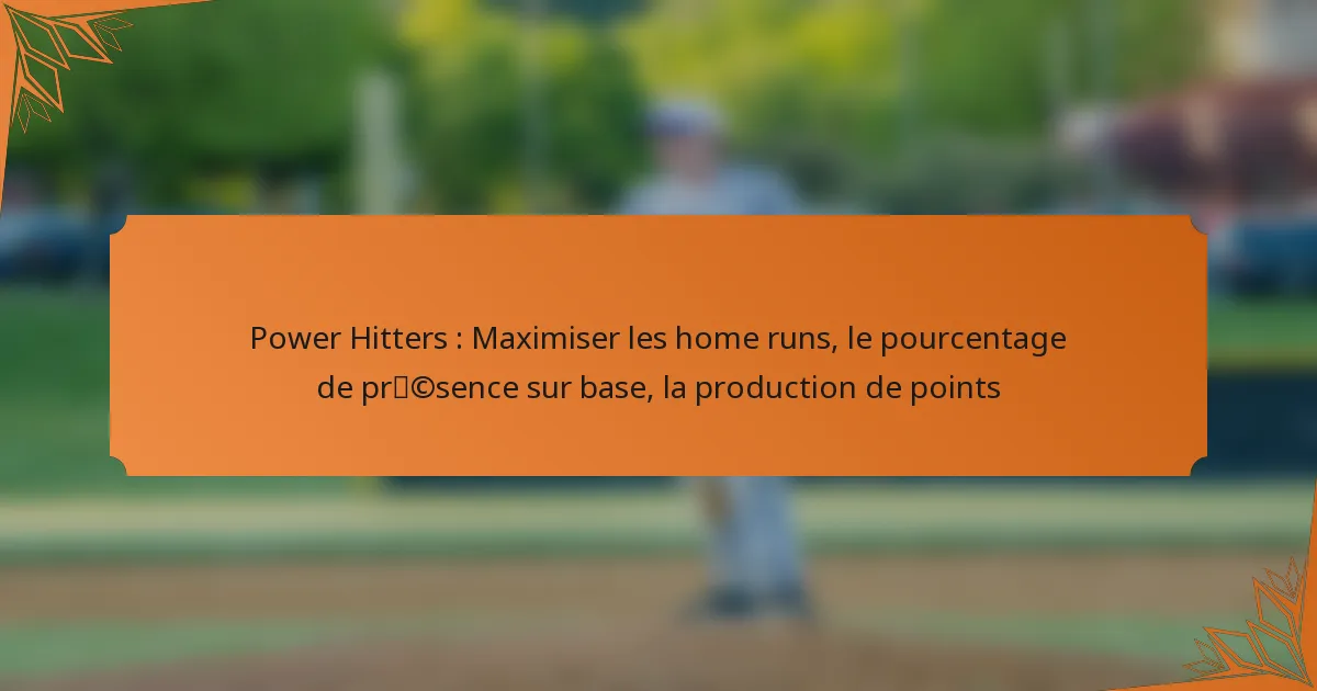 Les frappeurs puissants peuvent maximiser les home runs en se concentrant sur des mécaniques de swing efficaces, des régimes d’entraînement adaptés et en comprenant l’impact de leur environnement. Les facteurs clés incluent l’optimisation de la vitesse de batte, l’entraînement en force et l’analyse des dimensions des stades pour améliorer la performance globale.